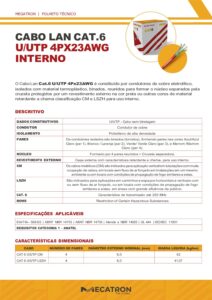 | ESPECIFICAÇÕES APLICÁVEIS | ANSI/TIA– 568.2-D, ABNT NBR 14703, ABNT NBR 14705, UL 444, ISO/IEC 11801, Atende a NBR 14565, NBR 16521 e NBR 16264 |