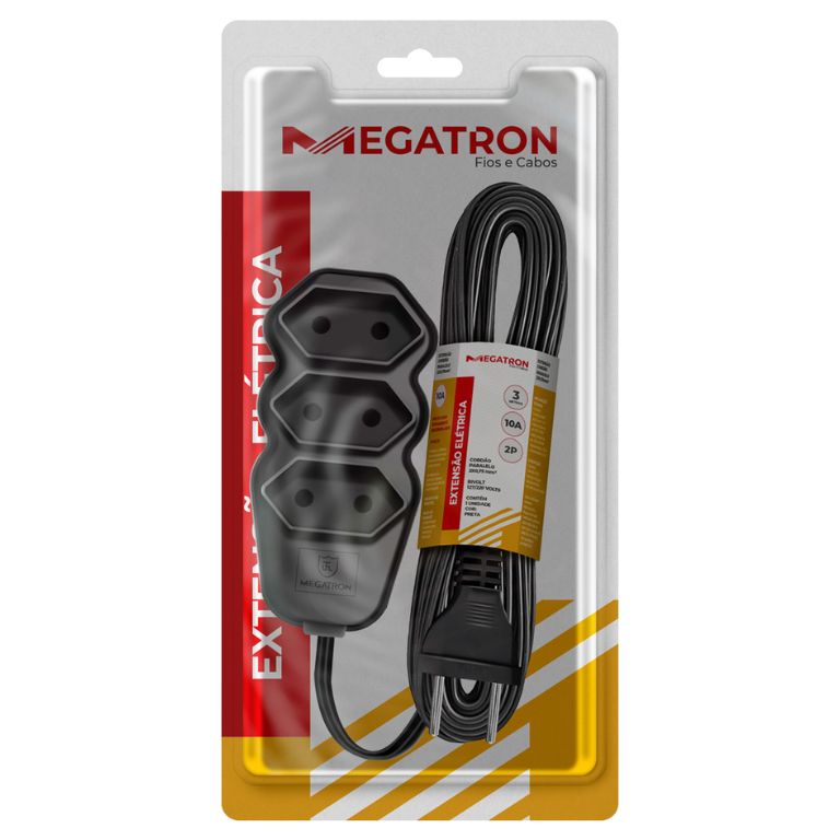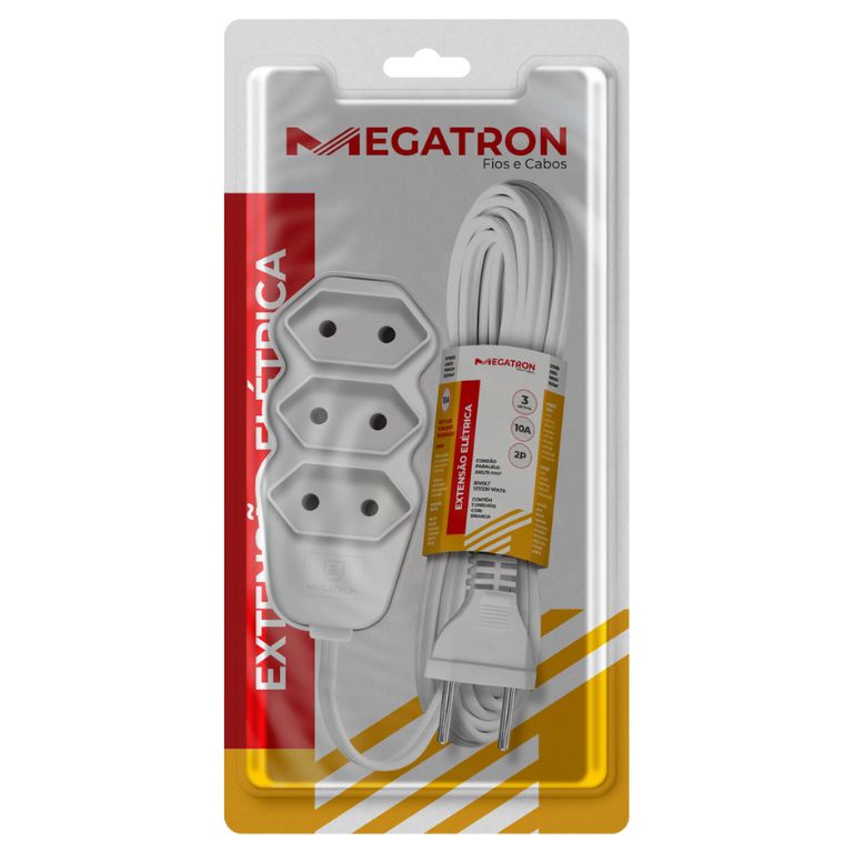As Extensões Megatron de 3 tomadas são soluções práticas e seguras para distribuir energia, disponíveis na versão de dois pinos. Oferecidas nas cores branca e preta, possuem opções de tomadas em 90°, otimizando o espaço e facilitando a conexão de fontes maiores. Garantindo durabilidade e eficiência. Ideais para uso doméstico ou comercial, são compatíveis com redes bivolt (127V e 220V).