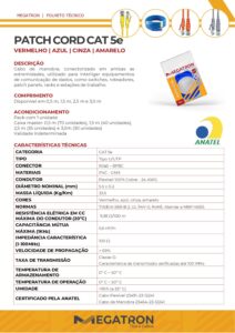 O Patch Cord Cat5e Megatron é um cabo de rede utilizado para conectar equipamentos em redes de dados com praticidade e eficiência.